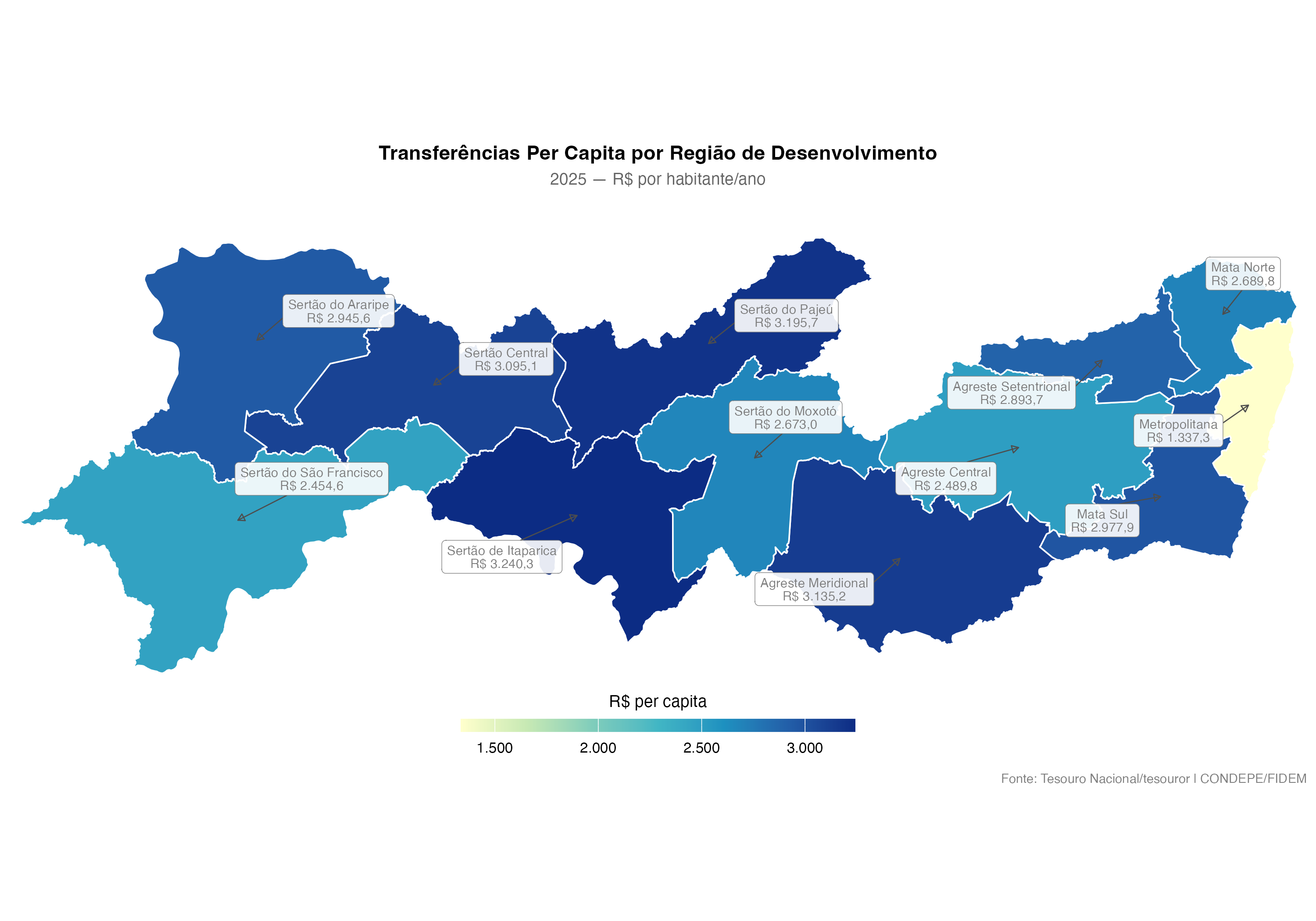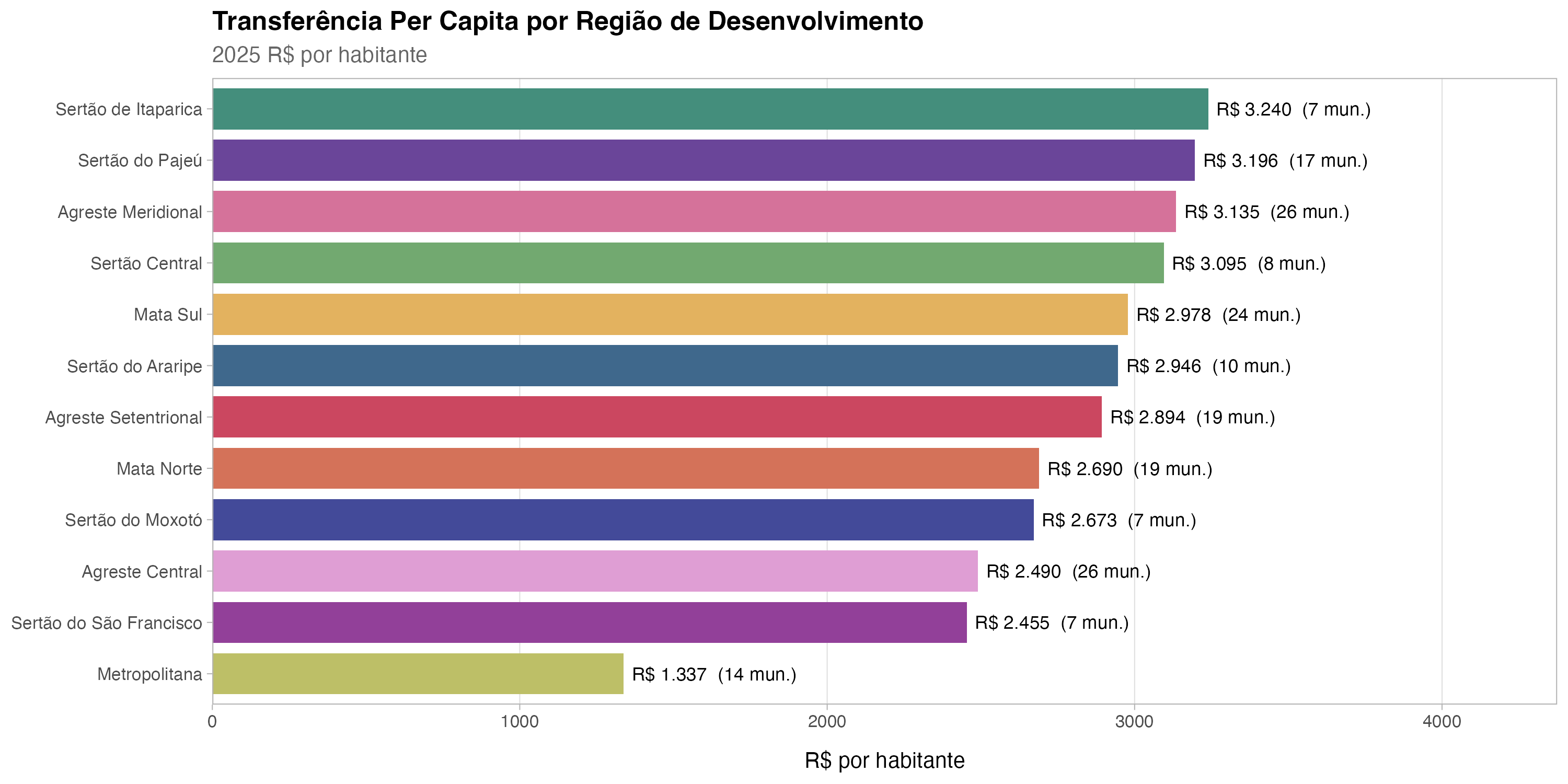 Pernambuco, com seus 185 municípios distribuídos em 12 Regiões de Desenvolvimento (RDs), oferece um caso rico para análise: a Região Metropolitana de Recife concentra volume, mas o Sertão se destaca per capita.